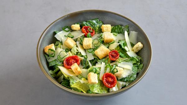 Romanasalat | Tomate | Cäsar Dressing | Frühlingszwiebeln | Croûtons | Parmesan
