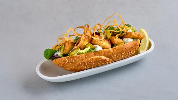 Sauerteig Bun | Backfisch | Remoulade | Gurkerl | Röstzwiebeln